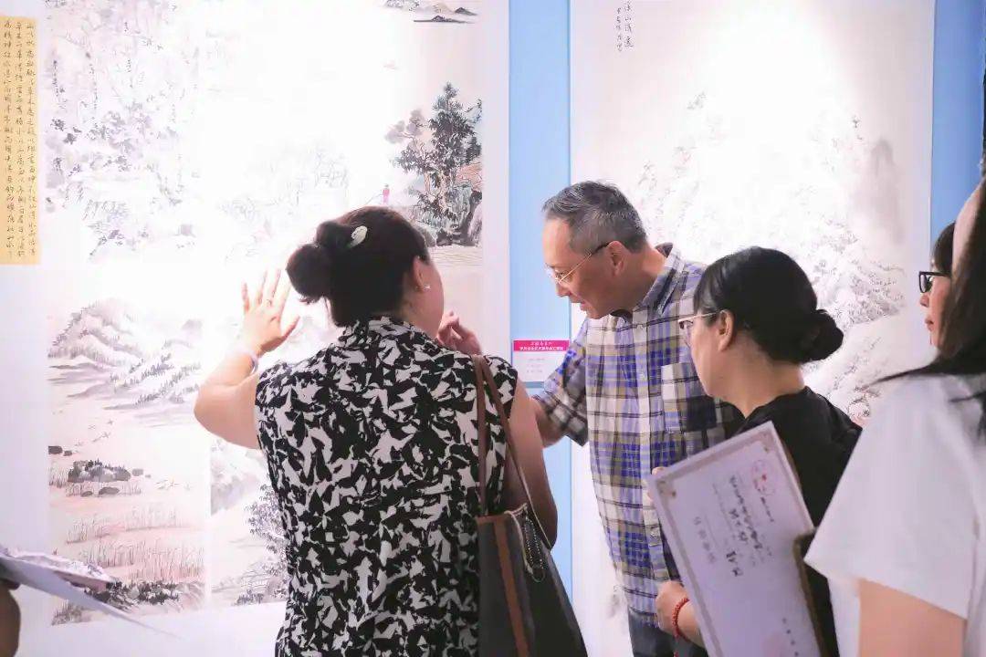 随后,导师们开始导览讲解作品。他们以专业的视角和深入的分析,为观众们解读每一幅作品的创作背景、技法运用和艺术内涵。学员们围在导师身边,认真聆听,不时提出问题,与导师进行交流探讨。通过导师的讲解,观众们对这些作品有了更深刻的理解和感悟,也更加感受到了中国画艺术的博大精深。在这个过程中,学员们不仅回顾了自己的创作历程,也从导师的讲解中汲取了更多的艺术养分,为自己未来的创作积累了宝贵的经验。