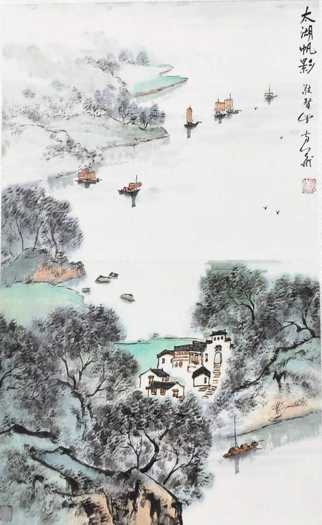 金陵是江南人杰地灵之冠,书画文脉源流可写半部中国美术史,尤其是在新中国成立之初,首先高举起新山水画的大旗,引领山水画的正确发展:以傅抱石、亚明为领军的新金陵画派,主张山水画家以深入现实自然和社会生活,贴近时代,反映体现时代精神的社会主义建设成就和祖国山河面貌。如今时代变了,对新金陵画派倡导的艺术精神永远不变,艺术家们对自然的选择图式和笔墨水境都蕴含着新时代的面貌。这在方华的山水题材中,多选择江南山水与自然景色,营造一幅幅宁静、安逸、祥和的山水意境,以平衡浮躁现实中的不安心灵。在山水构成的画面上,方华擅使用大块的空白表现天地水,展现博大精深的自然与心灵交融的无形有意的视觉时空,不作一笔尽得风流的“无中生有”至高审美效果。古人云:画贵简,简的极致是空无。这种“计白当黑”的空无审美境界留给观赏者无限的遐想,这正是传统绘画大象无形抽象写意之画法。画令人喜不如令人思想,在面对画面的空白放飞想象中获得审美的享受,这正是方华的山水画置陈布势选境继承古今传统的妙处。