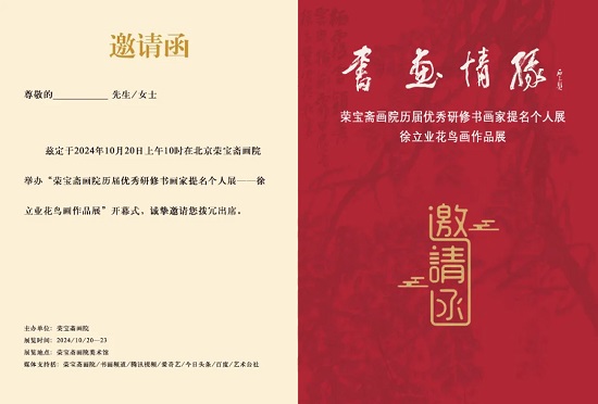 荣宝斋画院 历届优秀研修书画家提名个人展 徐立业花鸟画作品展 主办单位 荣宝斋画院 展览地点 荣宝斋画院美术馆 展览日期 2024年10月20日—10月23日 媒体支持 荣宝斋画院 书画频道 腾讯视频 爱奇艺 今日头条 百度 艺术公社 藏品艺术网 徐立业近照 艺术简介 徐立业,江苏徐州人。江苏美术家协会会员、中国苏轼研究会理事、徐州市苏东坡艺术馆馆长、国开大学郭石夫花鸟画课程辅导教师。 1986年毕业于长春市广播函授学院国画山水专科。2021年研修于荣宝斋画院郭石夫写意花鸟画研究工作室,为工作室画家,2022年至2024年研修于荣宝斋画院郭石夫访问学者工作室,为访问学者。 参展作品(部分) 供稿:荣宝斋画院