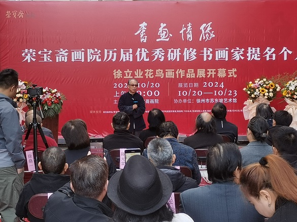 藏品艺术网北京10月20日讯 今天上午10时,由荣宝斋画院主办、徐州市苏东坡艺术馆协办的“荣宝斋画院历届优秀研修书画家提名个人展暨书画情缘——徐立业花鸟画作品展”在北京荣宝斋画院隆重开幕,共有徐立业先生60幅国画大写意花鸟作品参加展览。