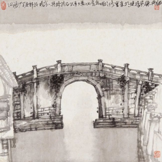 池沙鸿 《绍兴东浦泗龙桥》 38×38cm 2020年