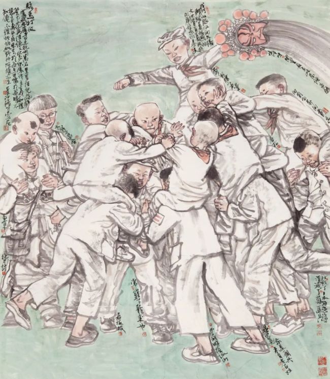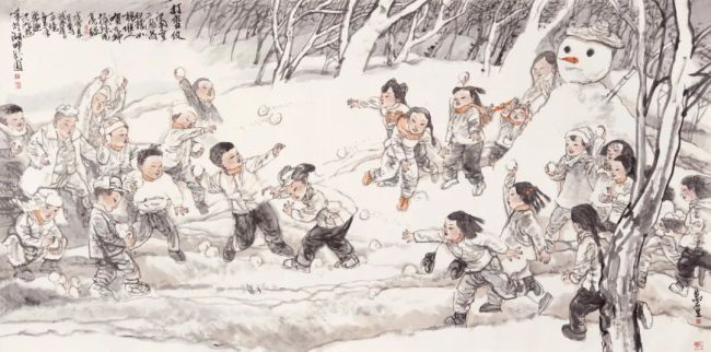池沙鸿 《打雪仗》 120×249cm 2018年