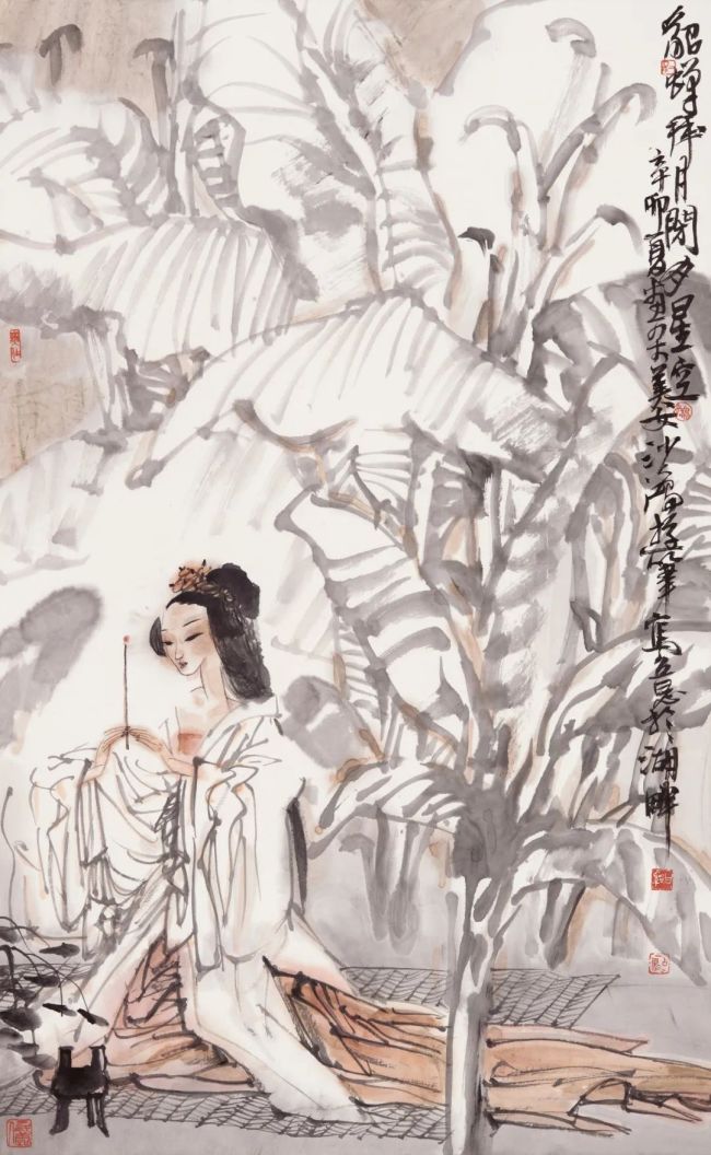 将中国传统书画的理念和笔墨技法与有点科学意味的写实人物画技术结合很像走钢丝。关注笔墨挥洒,人物易走形;但求形象准确又容易约束了笔墨发挥。只有具备扎实的造型功底,方可将人物化作胸中成竹,循着文人画艺术的特点,讲究书法运笔,重视“笔性”,欣赏笔端上流露的书卷气和技术高度。使画作随性而不草率,又避免为了塑造的呆滞,而留下笔的神气、墨的韵味和笔笔生发开来的意外效果。追寻“华枝春满,天心月圆”的理想境界,获得精神表达的自由状态。