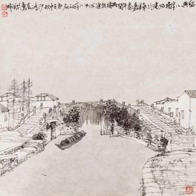池沙鸿 《绍兴八字桥》 38×38cm 2020年