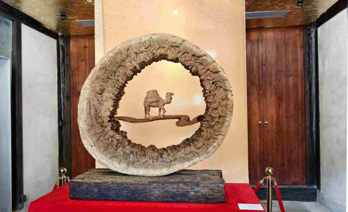 高公博介绍说,这块木头是他在烤鸭店偶然见到的,灵机一动觉得适合做木雕,就被他“抢救”下来,随物赋形,刻成了东坡先生赤壁怀古这一经典形象。