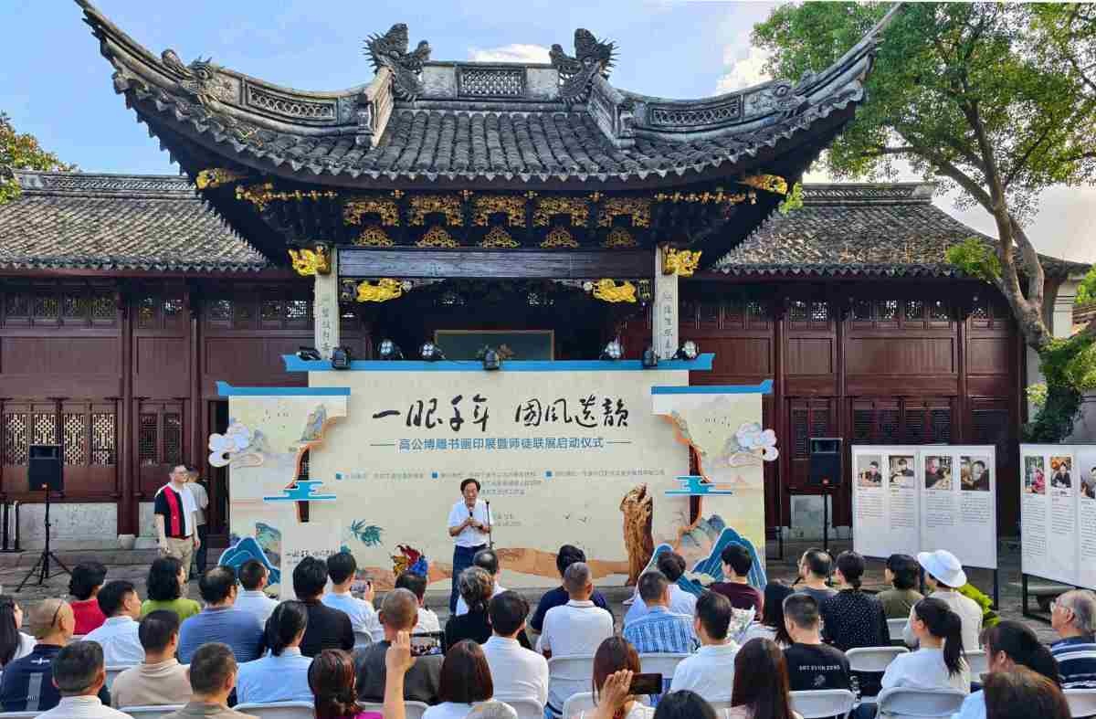 9月25日下午,“一眼千年 国风遗韵”高公博雕书画印展暨师徒联展在宁波市江北区慈城抱珠楼、慈城城隍庙开幕。