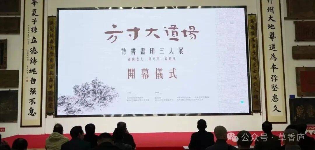 2025年11月1日,由北京崇德堂博物馆、北京文景珍本期刊博物馆主办,越竹斋非遗造纸、北京本真中医院、河北国平和圣书院、京作榫卯艺术馆山东烟台市福山区书法家协会协办的“方寸大道场”诗书画印三人展在北京崇德堂博物馆隆重开幕。此次展览汇集了胡元田、补山老人、孙晓东三位艺术家的精心之作,通过书法、绘画与篆刻等多种形式,共同呈现方寸之间的艺术境界与生命哲思。来自各地的三位艺术家的挚友共同出席了展览开幕式,中国民俗学会北京分会常务理事、国家一级演员、昆曲艺术家张卫东老师主持开幕仪式。