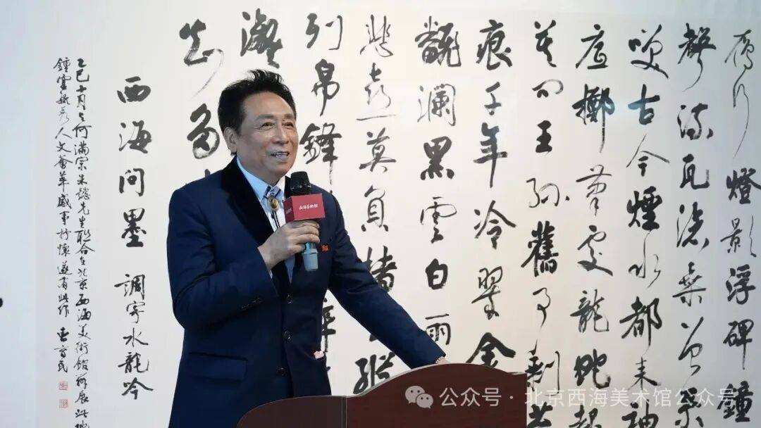 昨日雪落京城,今日墨润西海。在什刹海西岸的西海美术馆内,“西海问墨——曹育民、何满宗、朱懿书法作品展”于12月13日如期启幕。这不仅是一场展览的开幕,更像是一次艺术与思想的雅集。现场艺坛前辈、各界贤达齐聚,共同见证三位艺术家如何以笔墨为舟,在传统的深海中“问墨”,在当代的浪潮中“寻道”。