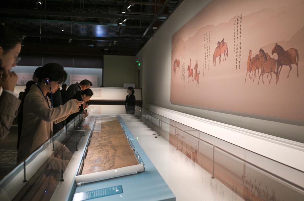 4月21日,“神骏:故宫书画艺术中的马世界”展览在故宫博物院开幕。展览选取50余件与马相关的故宫院藏珍贵书画,展现马的神骏之姿,展示传统文化深厚魅力。 4月21日,观众参观“神骏:故宫书画艺术中的马世界”展览。 新华社记者 金良快 摄 展览分为“行游”“牧放”“武功”“神骏”四个单元,展出国家一级文物20件,首次展出文物28件。重点展品包括唐人(传)《百马图》、北宋李公麟《摹韦偃牧放图》、金赵霖《昭陵六骏图》、元赵孟頫《人骑图》、元任仁发《出圉图》、清郎世宁《阚虎骝图》等历代画马名作。 故宫博物院院长王旭东表示,故宫博物院举办本次特展,旨在弘扬挺拔骏立、昂首向上的时代精神,引导观众欣赏古代佳作,探寻不同时代的社会历史和人文精神,体悟中华文化博大厚重的丰富内涵。 展览在文华殿书画馆展出,将持续至6月21日。(记者徐壮)