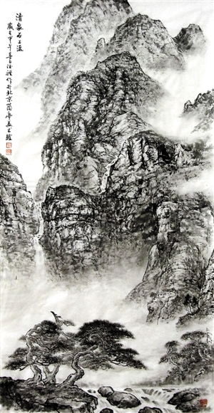 本次展览是杨德祺首次举办山水画专题展览,他拿出了自己一年来的得意之作,其中包括一幅丈二巨幅的《松泉图》,希望能够听取各方观众的意见。