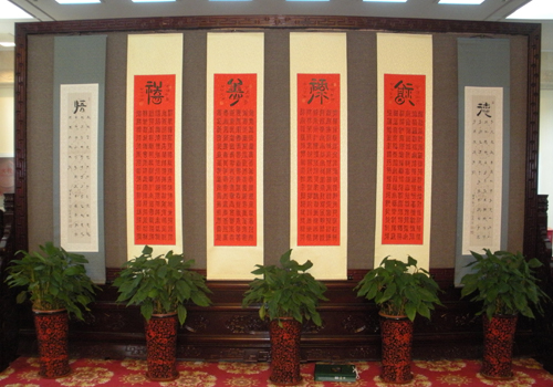 藏品艺术网北京4月8日讯 为庆祝中华人民共和国成立66周年,由民族文化宫、国家民族画院、中国民族艺术馆主办,北京龙韵居金丝楠收藏馆、北京电视台四海漫游栏目组协办,北京市朝青园古玩市场承办的“盛世中国——2015当代书画名家系列邀请展十一人联展”今天上午在北京民族文化宫三楼东厅开幕,郭启民、张香群、胡京生、石金库、牛建华、朱家骞、段京良、谷雨、周建、刘承俭、刘云洲等11位艺术家的近80幅书画作品联袂展出,受到与会嘉宾们的高度好评。