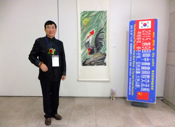蓝色波涛,红色山树。10月30日,“相聚木浦——第九届韩中国际书画交流展”在韩国隆重木浦开幕。韩中双方近百件作品参加了展览。中国书画世界行走进·韩国木浦活动的张瑞祥、田战军、周铭、肖剑、高新民、戴志东、吴建朝、李光寒、颜志勇、孔现文、周忠振、陈驰、张帆、朱德安、黄惜华、徐学娟、郑国英、张建华、马贵先、林振强等25位书画家作品参展。