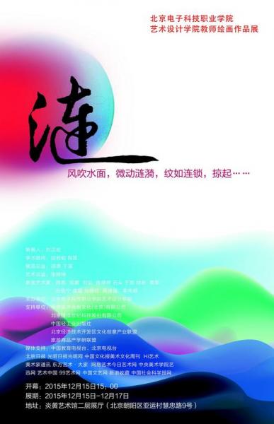 “涟——北京电子科技职业学院艺术设计学院教师绘画作品展”于2015年12月15日下午15:00时在炎黄艺术馆开幕,这是首次职业院校教师绘画作品展,本次展览汇集了艺术设计学院13位专业教师近百件绘画作品,是他们多年来专业探索成果的一次汇报,是一个艺术群体整体实力的集中展示。他们在长期的教育教学实践中,探索美术教育教学规律,着力于美术研究及美术创作,用最广泛散播于大众的语言形式关注与表现现实生活,艺术语言上既未隔断传统语言的联系,也不拘泥于呈现超然物外的精神满足和笔墨表现,逐步开始将个体情感、语言表现和对社会、人生、人世的关注对接起来,构成了他们在艺术追求上独特的审美取向和明确的文化针对性。