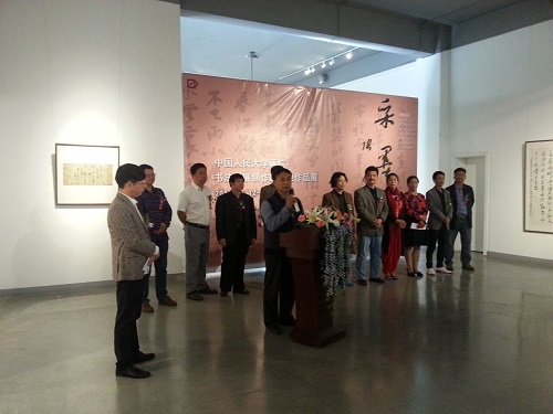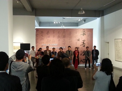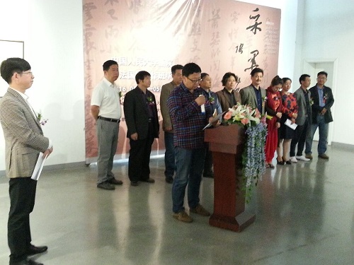 5月12日下午,由中国人民大学画院、北京东方大宋艺术交流中心主办,国中美术馆承办的“采墨静心——中国人民大学画院书法国展创作班毕业作品展”在宋庄国中美术馆一层展厅开幕。图为:展览主持人施之余介绍来宾 藏品艺术网北京5月12日讯 今天下午,由中国人民大学画院、北京东方大宋艺术交流中心主办,国中美术馆承办的“采墨静心——中国人民大学画院书法国展创作班毕业作品展”在宋庄国中美术馆一层展厅开幕,中国人民大学画院书法国展创作班师生李文龙、邢书博、花建明、陈秉智、张万旭、尚杰锋、林振荣、赵一峰、沈丰等人创作的几十幅书画作品联合展出,宋庄地区领导嘉宾和媒体单位等一行多人出席了当天的开幕仪式。 据悉,展览自5月12日开展,至5月17日结束,共将持续展出6天时间。 书画展览现场: 书画展开幕式上,中国人民大学画院书法国展创作班执行导师李文龙致辞 书画展开幕式上,国中美术馆馆长刘雅文女士致辞 书画展开幕式上,原宋庄镇党委书记胡介报致辞 与会嘉宾现场观展 与会艺术家在一幅书法作品前驻足观赏 部分展品欣赏: 部分展出作品 展出书法作品 展出画作 参展的两幅书画作品 展出画作 展出画作 参展的书法作品 参展的书法作品