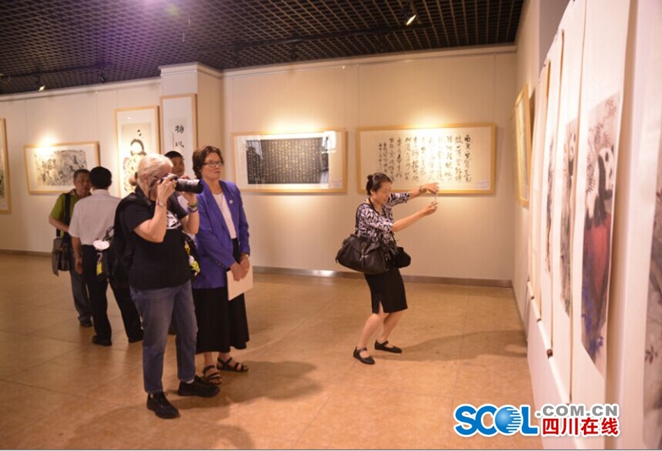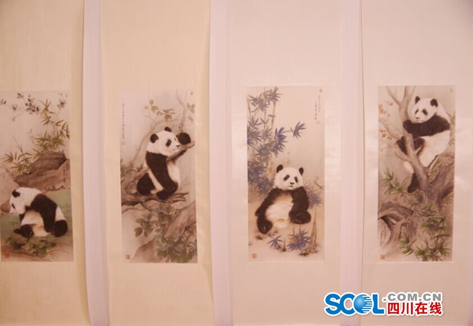 仪式结束后,与会嘉宾共同参观了大熊猫主题书画展。本次展览展出了全国政协书画室、中国书法家协会、中国美术家协会、中国国家画院百名知名艺术家的书画作品。据了解,此次参展作品中有全国人大原副委员长周铁农、全国政协原副主席李金华为此次展览专门题写的“憨态天成”和“熊猫是中国的,也是世界的”书法作品,及中国书法家协会主席苏士澍为此次展览创作并题写的巨幅书法作品《熊猫赋》和书法作品《憨态可掬》。除此之外,还有百名艺术家以大熊猫文化、美丽中国等相关主题创作出的百余幅作品,一一展现出大熊猫憨态天成的可爱形象。这些作品通过视觉、感官等艺术手段,呼吁参观者爱护大熊猫、保护大熊猫、珍惜大熊猫,使大熊猫文化从书画家的笔墨丹青走向参观者的内心深处。