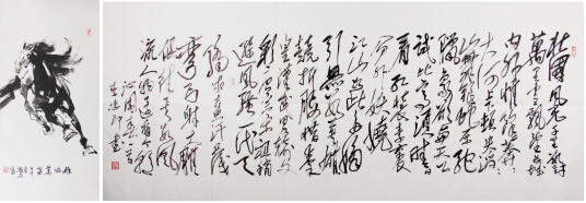 古人“书法用笔”,即要求画家在作画时要像写书法一样用笔。所以,中国画又是“写”出来的。而马的线条勾勒要有轻重,缓急变化,不可只用粗细相等的线描,这样线条的生动,活泼,更为刻画形象提供好的的表达。鸿石老师的马能画的那么好,与他的书法是离不开的。