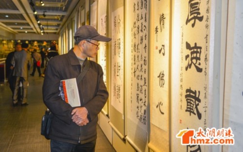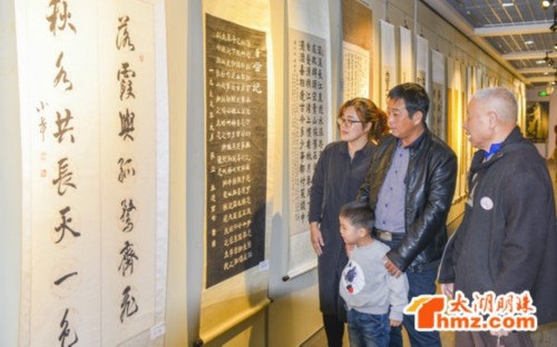 为纪念中国无锡书法艺专诞辰三十五周年,中国无锡书法艺专校友会成立四周年,以及《翰墨丰碑》的出版,11月17日,全国艺专师生书画交流展在无锡何振梁与奥林比克陈列馆隆重举行。 三十五年前,无锡市老市长、书法前辈徐静渔先生和和致力弘扬中国优秀传统文化的陈陵驼、吴炳伟等一批书法工作者,克服重重困难,首创中国第一所书法高校。他们勇创“八个第一”,桃李天下,使书法艺术成中国书法教育史上的一个璀璨明珠。 四年前的今天,书法艺专校友会北京总会在全国政协礼堂宣布成立。其秀成果之一一《翰墨丰碑》的发行,既是庆贺,更为书法艺专的创举及成就树立“丰碑”而而功德无量。这一精神产品,将为无锡争光,为中国书法教育史添彩。 藉此大型校庆所展示的百余幅书画作品,既有书法界前辈们的珍贵墨宝,又有艺专教师、优秀学员的精品力作,更有北京、上海以及西班牙等国内外名家的题书作画、深表庆贺的浓情厚意。 百幅书画作品,正草隶篆各显功力;笔墨传情,紧跟时代步伐,翰墨飘香,异彩纷呈,带给无锡市民一次难得的艺术盛宴。