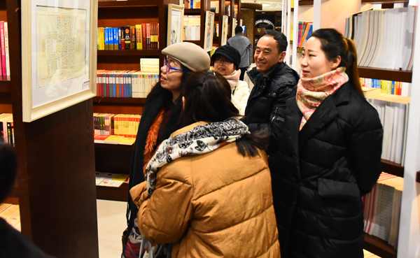1月6日,由北林区文旅局、北林区群众艺术馆、北林区书法家协会共同主办,绥化市新华书店承办的北林区迎新春书画小品展在市区新华书店二楼开展。书画展共展出30余位作者创作的60多幅书画作品。当天还进行了现场创作交流活动。 图1为市民欣赏书画作品。 图2为现场创作交流。 实习记者 李卓远 摄