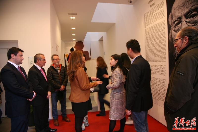 在当天下午举行的画展开幕式上,马拉加市长弗朗西斯科·德·拉·托雷斯·普拉多先生出席并致辞,他说:“齐白石的作品是第一次在欧洲展出,你们不仅带来了齐白石的经典作品,也带来了中国的艺术精神。齐白石和毕加索两位大画家是同一时代的人,虽未谋面,但彼此理解,彼此欣赏,他们也让湘潭和马拉加这两座城市的友谊更加深厚。”随后,300余名马拉加市民参观了作品展出,并观看了湘潭画家的现场作画。马拉加市民玛利亚·卡门(Maria del Carmen)说:“我对中国文化十分喜爱,本次画展在马拉加市已经家喻户晓,我非常荣幸能观看到这次画展!”。