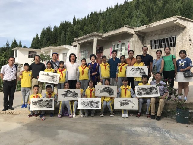 黄果树风景区被世界基尼斯总部评为世界上最大的瀑布群,列入世界基尼斯记录。也是中国第一批全国中小学生研学实践教育基地,此次画展期间,艺术家们为圆梦贫困山区孩子们长期缺乏艺术教育资源,特意走访了黄果树贫困村“野人谷”现更名:幸福村,通过书画艺术现场创作交流、面对面指导的互动交流方式,传授专业知识,传播艺术文化,分享教学经验,激发学习兴趣,给贫困山区的孩子及教师以滋养、激励、感悟和启迪,传递正能量、开阔大视野,提升综合素养的机会。
