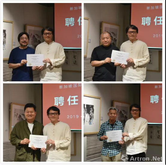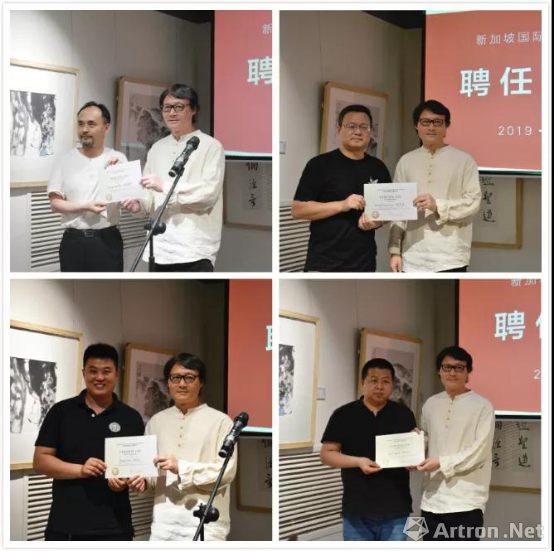 王鉴伟先生为艺术家马啸、王登科、杨中良、唐吟方颁发新加坡国际水墨协会海外评审委员聘书