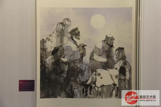 丁筱芳作品人物画《新疆刀郎三老汉》