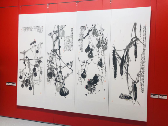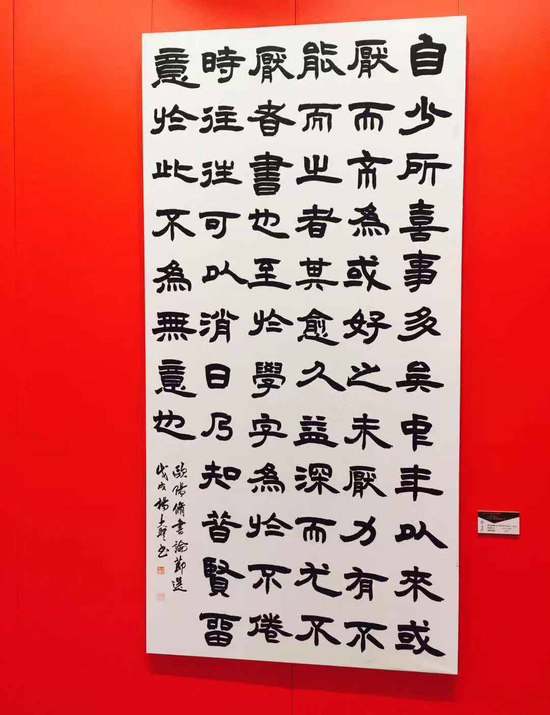 这些作品主题鲜明风格多样,根植传统推陈出新,立足当下彰显正气。如彭正海的《红梅赞》《寿桃三千年》,杨鸿圣的《韶山圣地》《红船从南湖起航》等,不但立意高,而且构图也很有新意和特色,拳拳爱国之心报国之志,均通过笔端跃然纸上。这次展出的两位书画家作品,数量多又尺幅普遍较大,大多数是八尺宣以上,有几幅甚至是巨幅,气势恢宏,震人心魄,如临其境。在当地的两人联展中尚属首次,在其它地方也少有。这些作品,为大家奉献了一场视觉审美与灵魂对话的艺术盛宴。