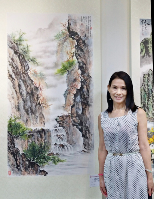 书画家吴欐樱与作品合照