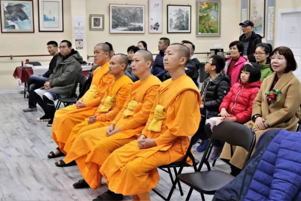 前不久皈依的少林弟子王岩说感谢少林文化中心的两位法师和今天到来的艺术家们,预祝书画展圆满成功。