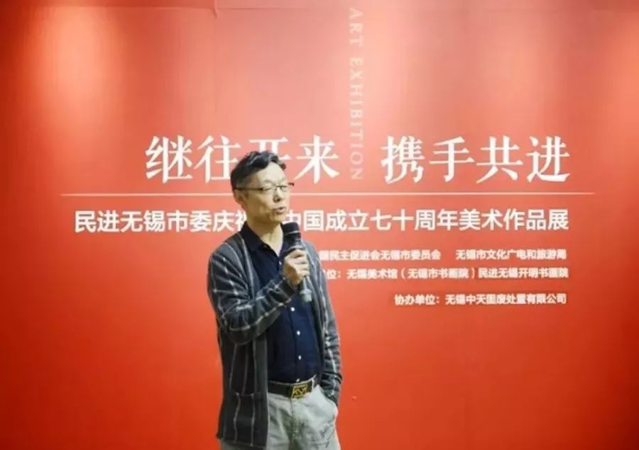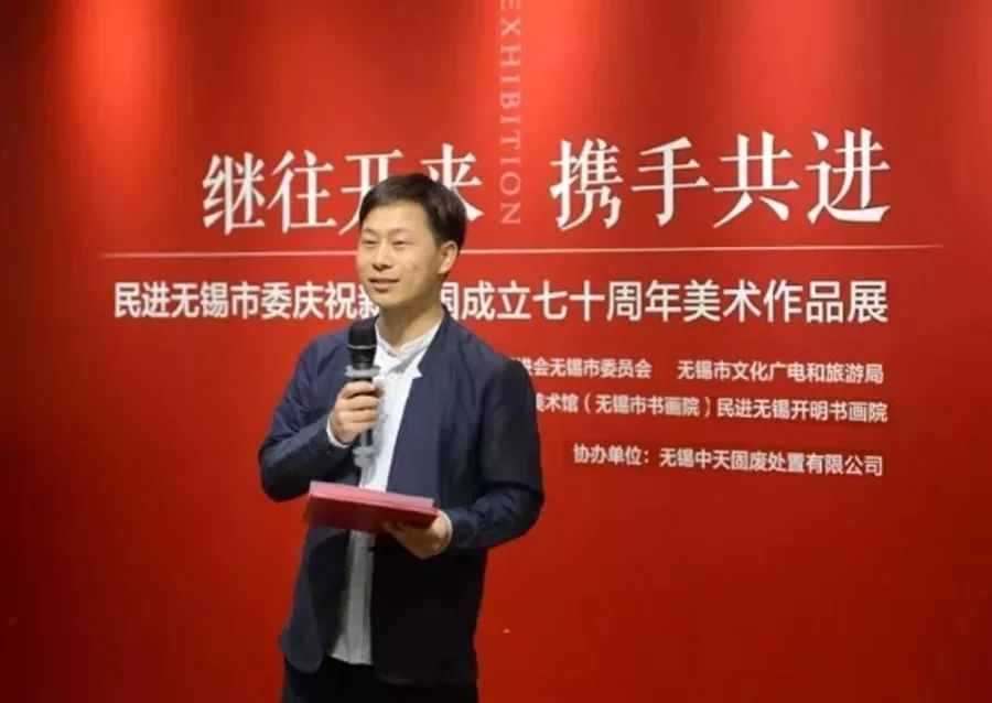 无锡市政协副主席、民进无锡市委主委金元兴宣布艺术展开幕!