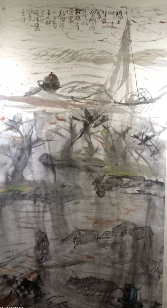 九十八旬著名艺术家王木东先生在市美协副主席、祥云美术馆馆长陈建国、文联秘书长毛建安、著名画家顾青蛟等人的陪同下观展。
