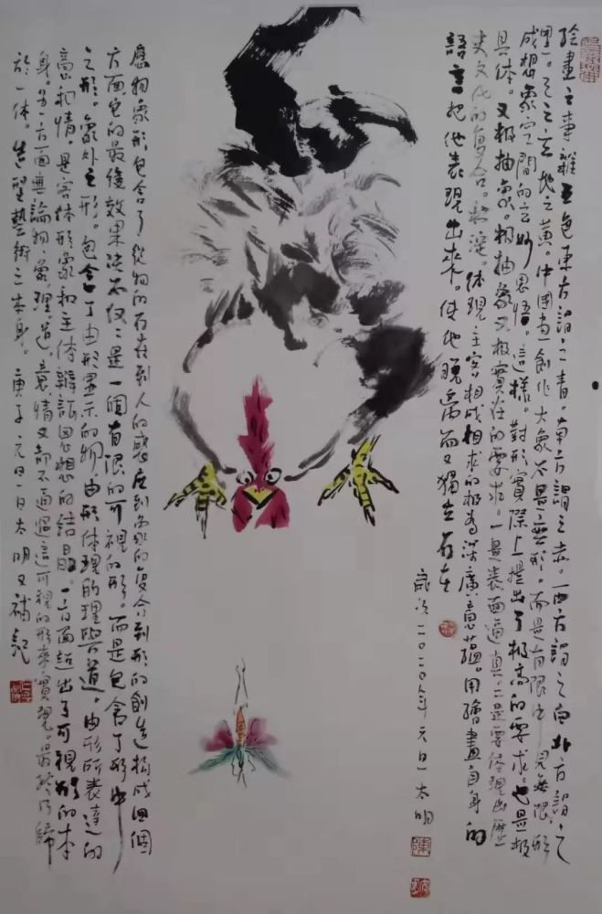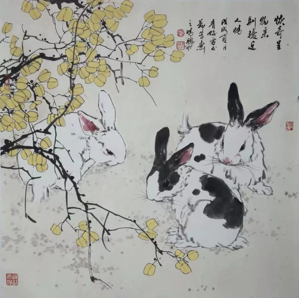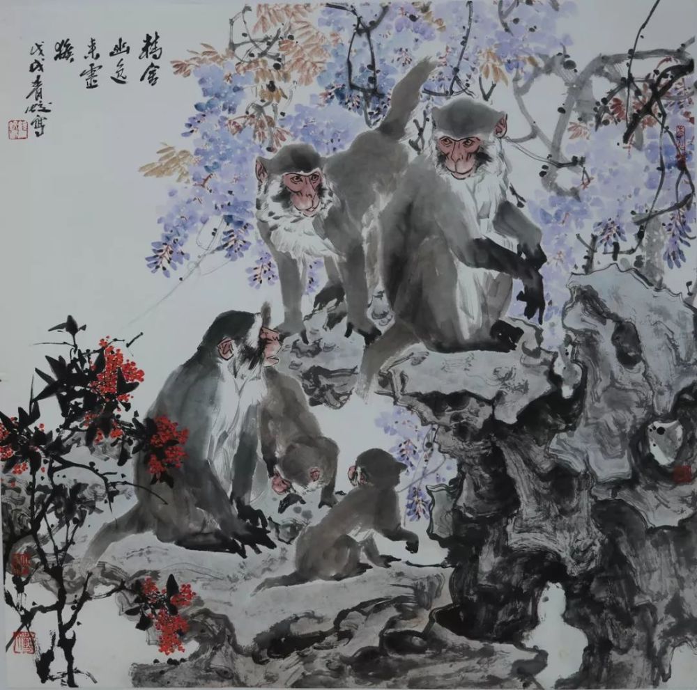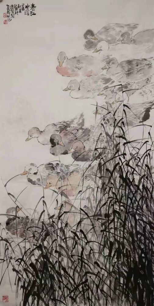 梅花万簇迎春鼠,画笔喜歌吉祥年。庚子年来了,伴随着春的脚步,梅的芳香,在市文联的亲切关怀指导下,今天我们在梅园文化中心举办了《喜迎新春一一顾青蛟、鲁金林、陈太明、扬辉中国画展。本次展览共展出中国画作品七十件,其内容均为人们喜闻乐见的仕女、花鸟、禅佛之类的吉祥题材,在本展中,著名画家顾青蛟老师的三十五幅作品均为从没露面的出版原作,题材广,技法新,人物走兽山水花鸟无一不显现出老师对人文自然的热爱之情,显现了中国传统文化的强大魅力。三位弟子的作品或热烈奔放,或平和致雅。显现了他们对生活对祖国的无比热爱。以善画雄鸡的陈太明笔下的雄鸡则将物性人性与自然性巧妙地进行了融合,豪爽奇譎的笔墨语言,传达了一片积极向上祥和美満的喜庆图景。鲁金林善画佛道高士,兼作旁类,笔墨散淡画境空幽有禅意,杨辉的花鸟画笔墨清雅,画面简约有新意。