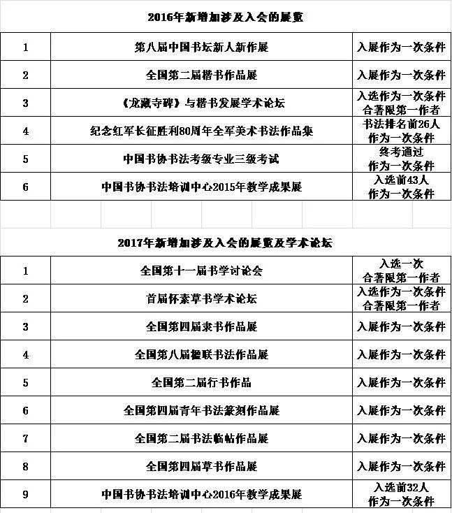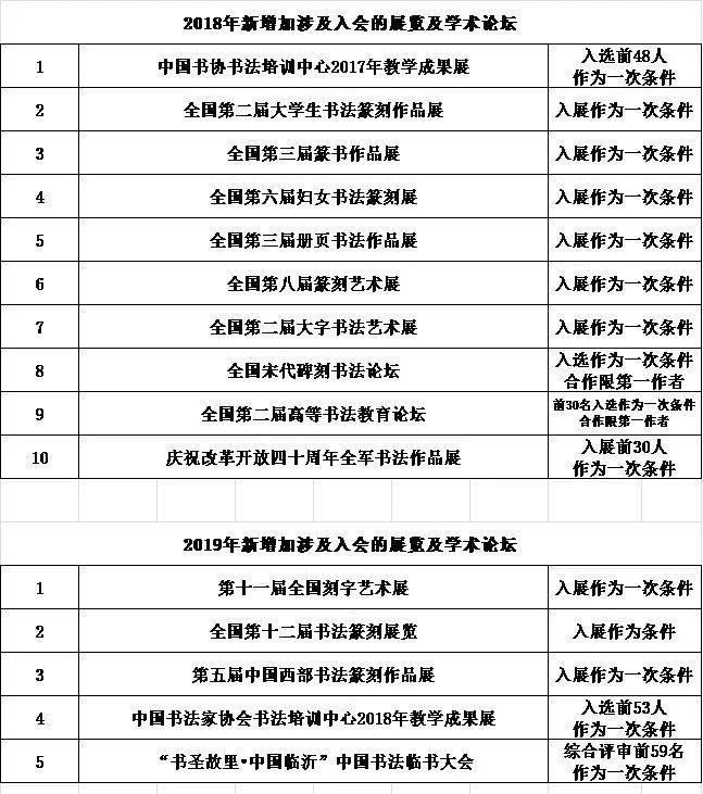 通 知 中国书协个人新会员申报工作现已开始,根据中书协《关于2019年度中国书协个人新会员申报工作的通知》要求,请符合条件的申报人员于2020年5月31日省书协联系,进行申报确认。确认符合条件后,按要求准备材料,统一上报。 申报材料参考: (1)《中国书法家协会个人会员入会条件细则(试行)》 (2)《具备入会条件的中国书协展览目录》可联系书法梦小编了解详情。 来源:中国书法家协会