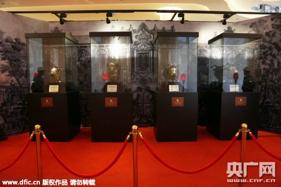 2015年11月24日,上海,即日起至29日,圆明园十二生肖铜兽首中的猪首、牛首、猴首、虎首真品齐齐来沪,在长阳路666号作公益展出。每天上午9点至下午18点,市民可前往免费观展。