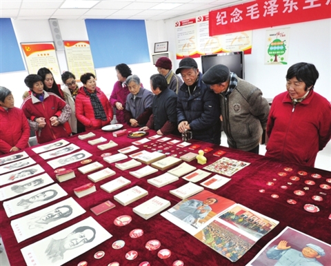 昨天下午,姑苏区平江新城新天地家园南社区举办了《纪念毛泽东诞辰122周年红色藏品展》。展出了社区居民家中收藏的像章、图片、书籍等物品共计300余件,从多个角度反映了毛泽东波澜壮阔的一生。 □通讯员 朱立新/文 记者 徐志强/摄