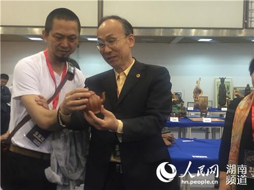人民网长沙4月14日电 栩栩如生的木雕、精美绝伦的湘绣、造型各异的天然奇石……今天上午,2016湖南(长沙)国际收藏产业博览会在湖南国际会展中心开馆,作为藏博会的主题活动之一,中国收藏产业“凤羽奖”评选大赛也已进入终评阶段,300余件入围藏品正在进行展出,有兴趣的市民可前往参观。