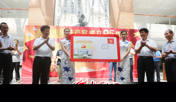仪式上,与会领导和嘉宾共同为纪念“庆祝中国共产党成立95周年滕州市第四届集邮收藏(红色专题)展览”纪念封揭幕。揭幕仪式后,与师生代表一起参观了展览。毛主席像章、党建类报纸、红色专题类邮集等藏品,让广大市民、师生们重温历史,铭记历史。