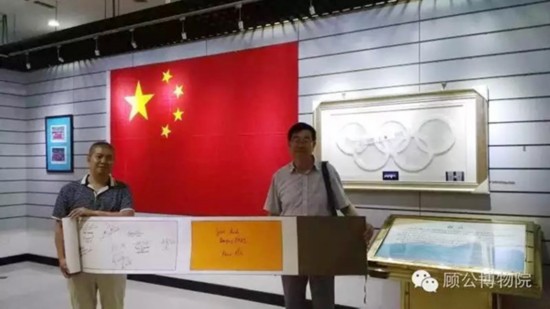 据本次展览藏品提供者中国报业协会集报分会会员顾玉超介绍,展览三件“宝贝”值得特别关注。一是国际奥委会主席巴赫的题跋及参加国际奥委会128次全会的78位奥委会委员题词的北京申办2022年冬奥会签名收藏长卷;二是从国际奥委会主会场抢救回来的悬挂会议现场的奥运五环;三是助威团现场使用过的大国旗。另外,国际奥委会128次会议文件、申办冬奥会成功号外、马来西亚华文报纸报道申办成功的特刊、国际奥委会主席巴赫签名128次会议邀请函、邮品及冬奥会冠军及运动员签名等藏品也很珍贵。这些藏品是顾玉超精心收集而成的,充分表达他对冬季体育项目和运动员的喜爱、敬佩。通过这次“迎冬奥收藏展”,使更多的普通人更加了解冬季项目,从而为支持北京和张家口举办2022年冬奥会贡献自己的力量。