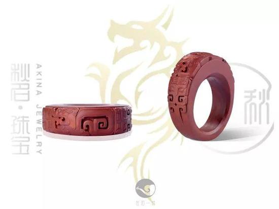 《缠绵》 作品创造性地将变形的深浮雕回纹与线条深浅充满节奏韵律感的兽面纹相结合,线条拐角处皆作弧线设计,庄严大气中富于变化;浅浮雕的如意纹给作品增添更多柔和感,使作品硬朗的风格中带着温和的气息,古色古香,雅致不凡。