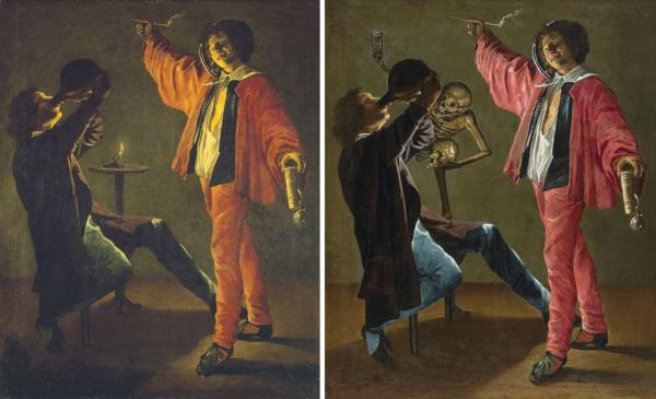 朱迪思·莱斯特 (Judith Leyster),最后一滴( The Last Drop)(约1639年)处理前(左)和处理后
