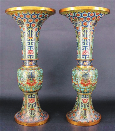 此次展会将展出的清代铜胎掐丝珐琅宝相花卉寿纹觚。