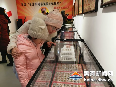 观看珍贵藏品 传承红色基因 纪念毛泽东同志诞辰126周年红色文化藏品展开展 12月21日,纪念毛泽东同志诞辰126周年红色文化藏品展在黑河旅俄华侨纪念馆临展厅开展。 此次藏品展由市委统战部、市归国华侨联合会、爱辉区委宣传部主办,黑河旅俄华侨纪念馆、瑷珲集邮研究会承办,展期一个月。展览共展出毛泽东同志的画像、著作、像章、语录、论述、老照片、宣传画、旧杂志,以及反映毛泽东同志生平活动和事迹的研究文集等千余件藏品,旨在教育广大干部群众继承革命传统、传承红色基因,牢固树立全心全意为人民服务的宗旨,立党为公、执政为民,履行好自己的职责使命。