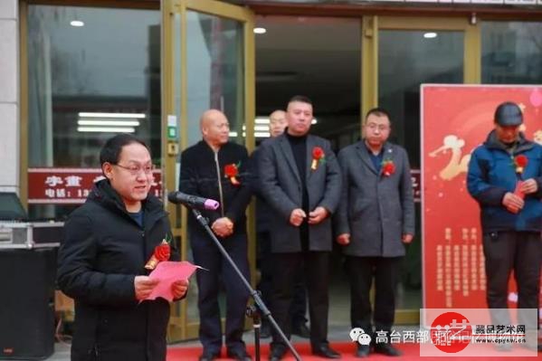 高台县西部民俗记忆博物馆馆长、县收藏家协会副主席邢余杰先生主持高台县收藏家协会举办的文化艺术交流展会开幕,并代表高台县收藏家协会对各位领导、来宾及社会各界人士的到来表示热烈的欢迎和衷心的感谢!