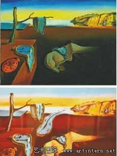 达利最知名的作品,也是超现实主义最知名的作品之一。这幅作品最初创作于1931年,时年26岁的达利在其中充分展现了他的天赋。1974年,达利对作品进行了重新演绎,他在画面中增添了一支钟表——从海面涌入内陆的软钟,这无疑是对原始作品的一种升华。软钟毫无疑问是达利的标志,也是艺术史上的重要标志。钟为什么是软的?相信这个问题自达利创作之日起直到今天仍然令人们感到疑惑。而倘若钟表来自海洋,这样的解释似乎就说得通了:钟表代表时间,而大海在某种意义上则代表永恒,达利让“时间”直接来自大海,无疑是对“永恒”的一种全新解读。这一点从之后的摄影大师杉本博司的《海景》系列作品中也可以看出。