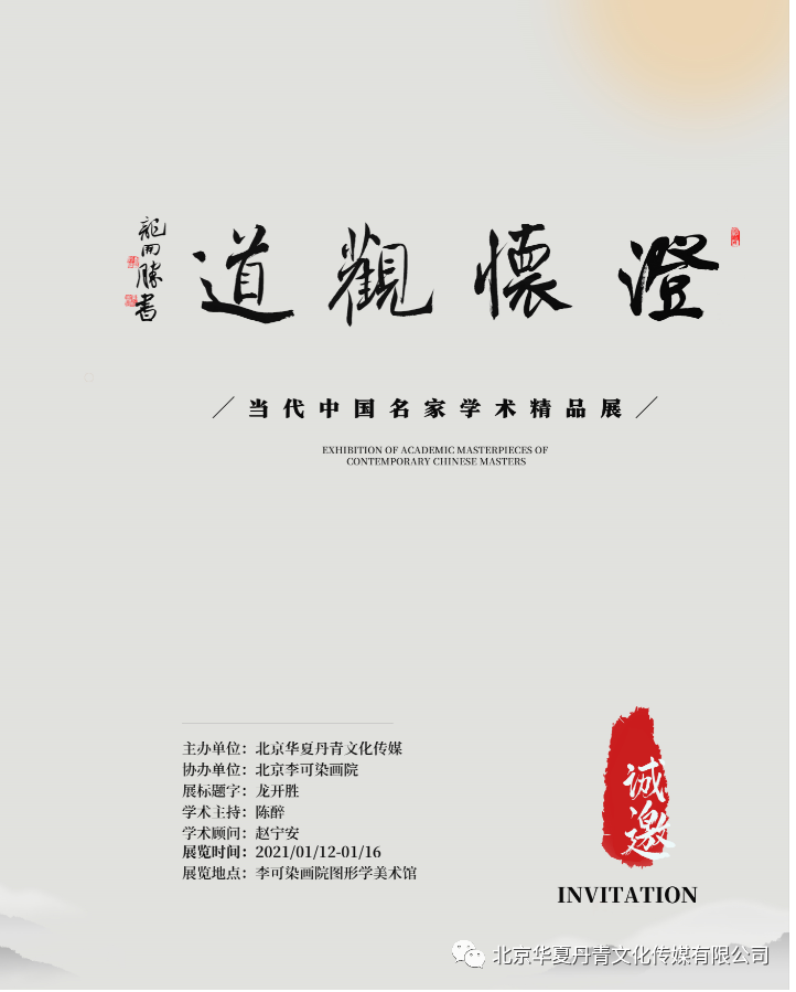 有鉴于此,北京华夏丹青文化传媒携手李可染画院,现将于1月12日-16日举办此次以“澄怀观道”为主题的“当代中国名家学术精品展”,重点邀请百位活跃在当今中国画坛和学术界的实力派书画家参与本次展览,旨在提倡艺术家们观察生活中的艺术,当有“澄观”之心,眼前之景、之物、之人皆能成为人心之所向。共同弘扬中国精神、凝聚中国力量,以传承发展为中心的创作导向,努力创作更多无愧于时代的优秀作品。