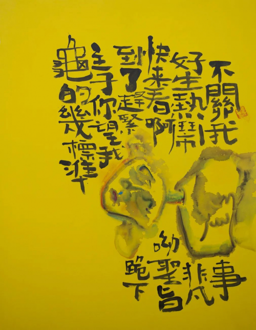 他的作品中包含了⻓期紧锁在储藏室里的故乡记忆、血统与身份,诉说了自北方家乡至南方与海外生活的心理旅程与文化经验。焯雄在漂泊与游历间汲取灵感,强调反⻄方油画的程式化传统,并在画布中融入对生活各个⻆落的体察。他旨在通过作品表达自身对于绘画传统的敬畏与反叛,对于母体文化生态的留恋与作别,对于当下的思考与提问;去设计、保存文明信仰与当代社会的观察。