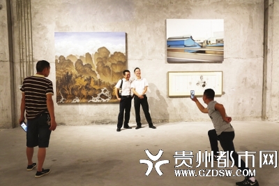 参观者在参展作品前拍照留念。 近日,“798印象”系列当代艺术展第三次展览在贵阳开幕,展览了包括陈文令、马六明、钟飙等著名艺术家的油画、雕塑、装置、影像、设计等50多件作品,已故艺术家常宗贤价值数百万的巨幅画作品颇受贵阳市民青睐。 这次展览是798贵阳艺术中心成立以来举办的第三次展览,也是北京798艺术区和贵阳在文化领域深入合作的第二个年头。展厅位于中天未来方舟风景沿岸G6组团区域,占地面积近1200平米。(记者 张斌 摄影报道)