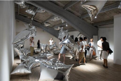 这次展览的另一个亮点是沃霍尔的装置作品《银云》,荧光的、枕头一样的作品轻轻漂浮在展览空间中。这件作品1966年初次在纽约的里奥·卡斯特里画廊展出,观众可以随意触碰、在这些云朵中移动,成为最早将沉浸式的互动的理念引入艺术装置的作品。“在这些作品中,沃霍尔以机器生产的方式和固定的重复形式削弱了由艺术家之手施加于作品的痕迹。”Presca Ahn评论道,“尽管如此,这些作品却流露出一种非常人性的、个人化的,甚至是诗意的特质,这种平衡与张力使得作品时至今日仍如此引人入胜。”