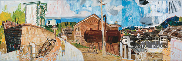 戴士和 《云南文山东山乡合掌村》 布面油画 100x300cm 2015年