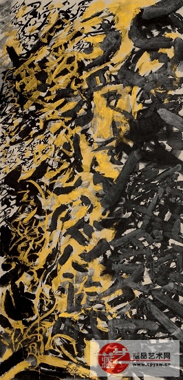 娄濛 招财符系列之二 136×68cm 纸本水墨、丙烯 2019年